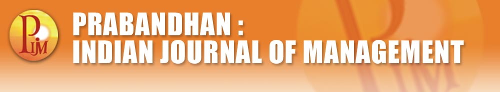 Prabandhan: Indian Journal of Management (ISSN 0975-2854) : is a double blind peer reviewed refereed monthly journal that publishes papers on diverse areas of management such as Human Resource Management, Organizational Behaviour and Organizational Management, International Business, Knowledge Management, Environmental Management, Data Analysis and Decision Making, Technology and Operations Management, Strategic Decision Making, Negotiations and Competitive Decision Making, Ethics in Management, Corporate Governance, Corporate Social Responsibility, Public Management, Rural Management, General Management, Hotel Management, Intellectual Property Rights, Education Management, Communication Management, Lifecycle Management, Spiritual Management, Tourism Management, Hospitality Management, Leisure Management, Inventory Management, Waste Management, Hospital Management, among others.